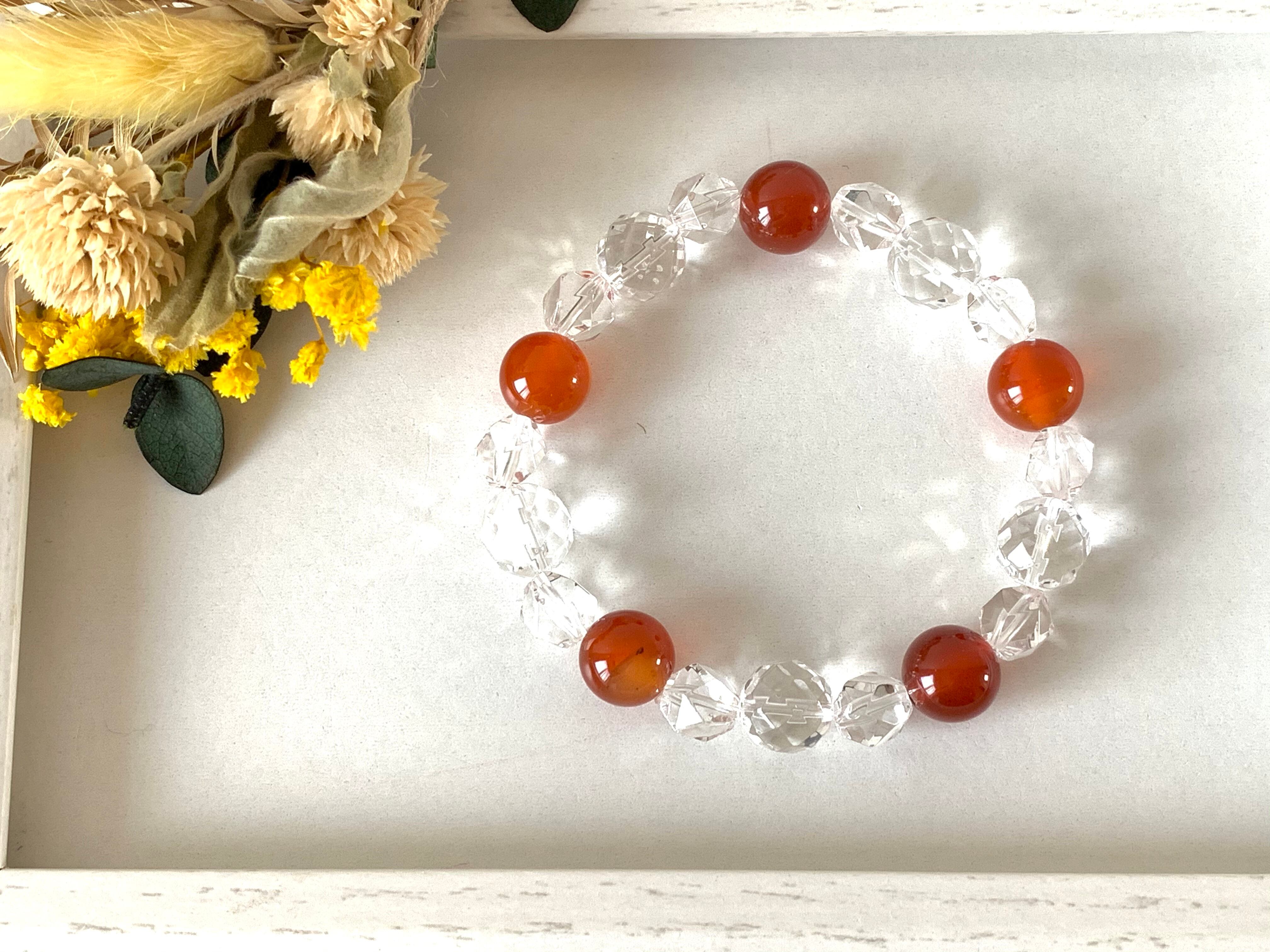 カーネリアン×クリスタル《スターカット・ミラーボールカット》ブレスレット