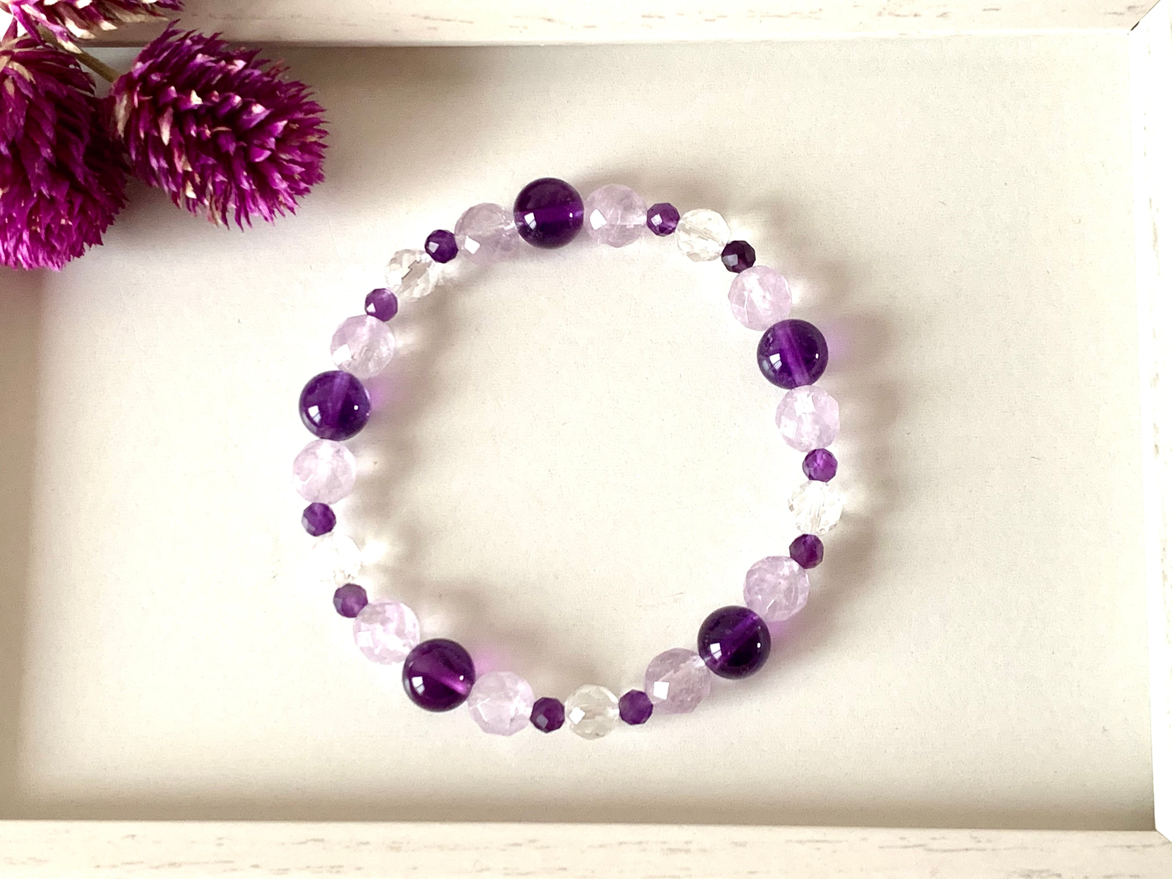 ピンクアメジスト×アメジスト×クリスタルブレスレット