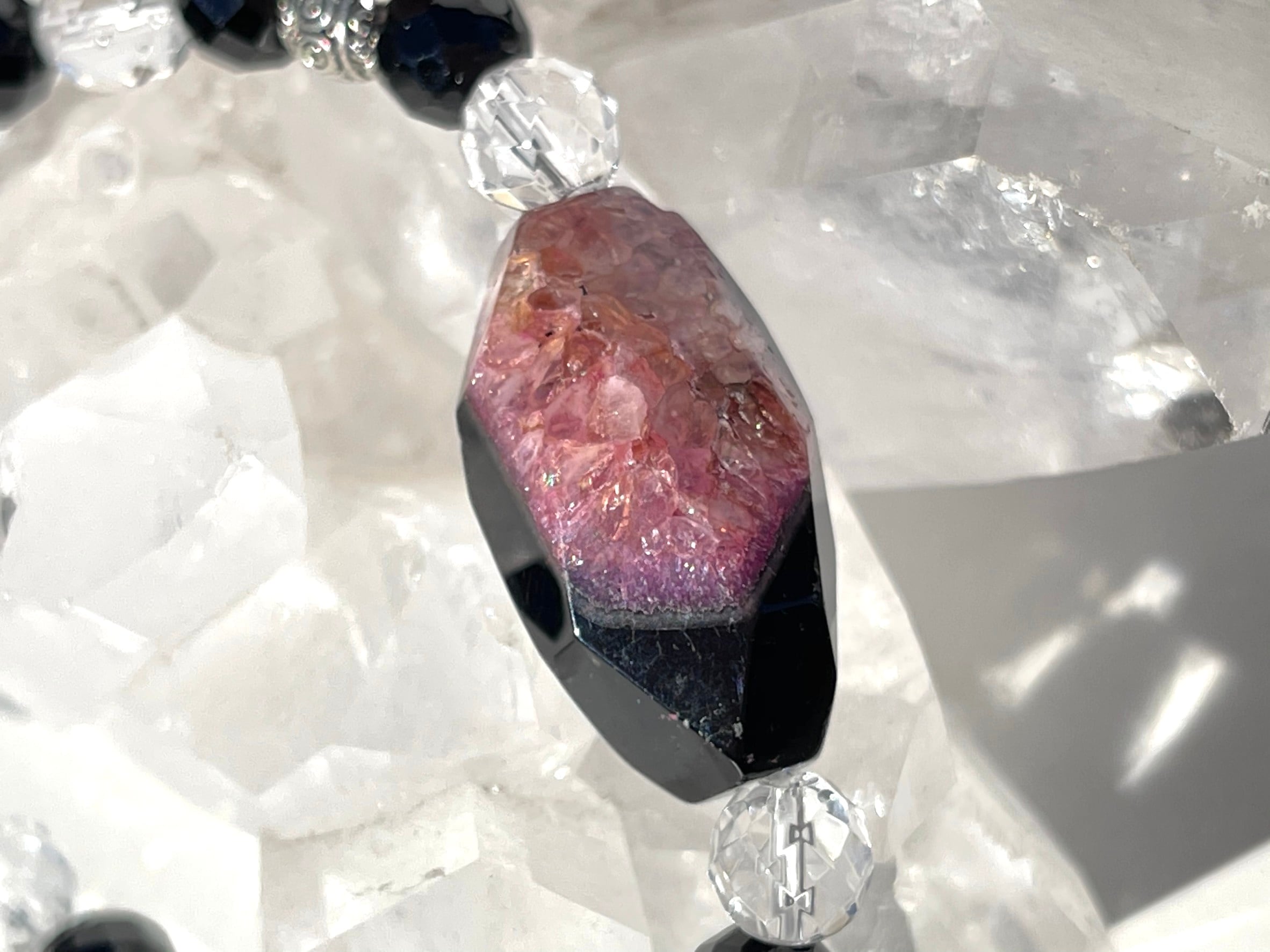 【ピンクドゥルージー×ブラック 水晶めのう天珠