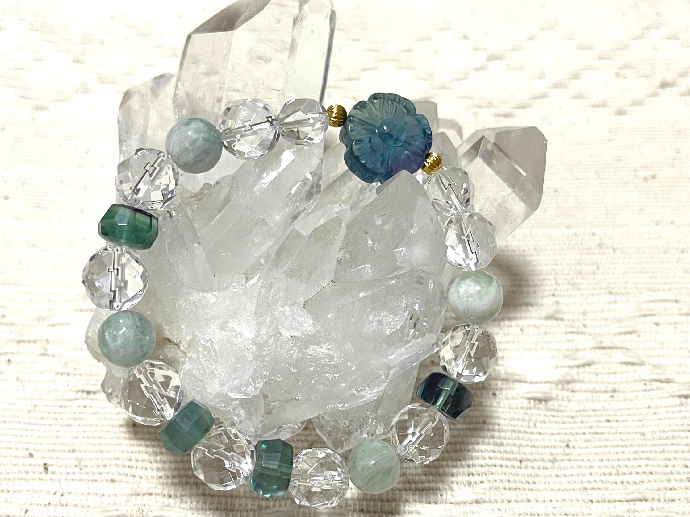 【フローライトお花型ブレスレット】