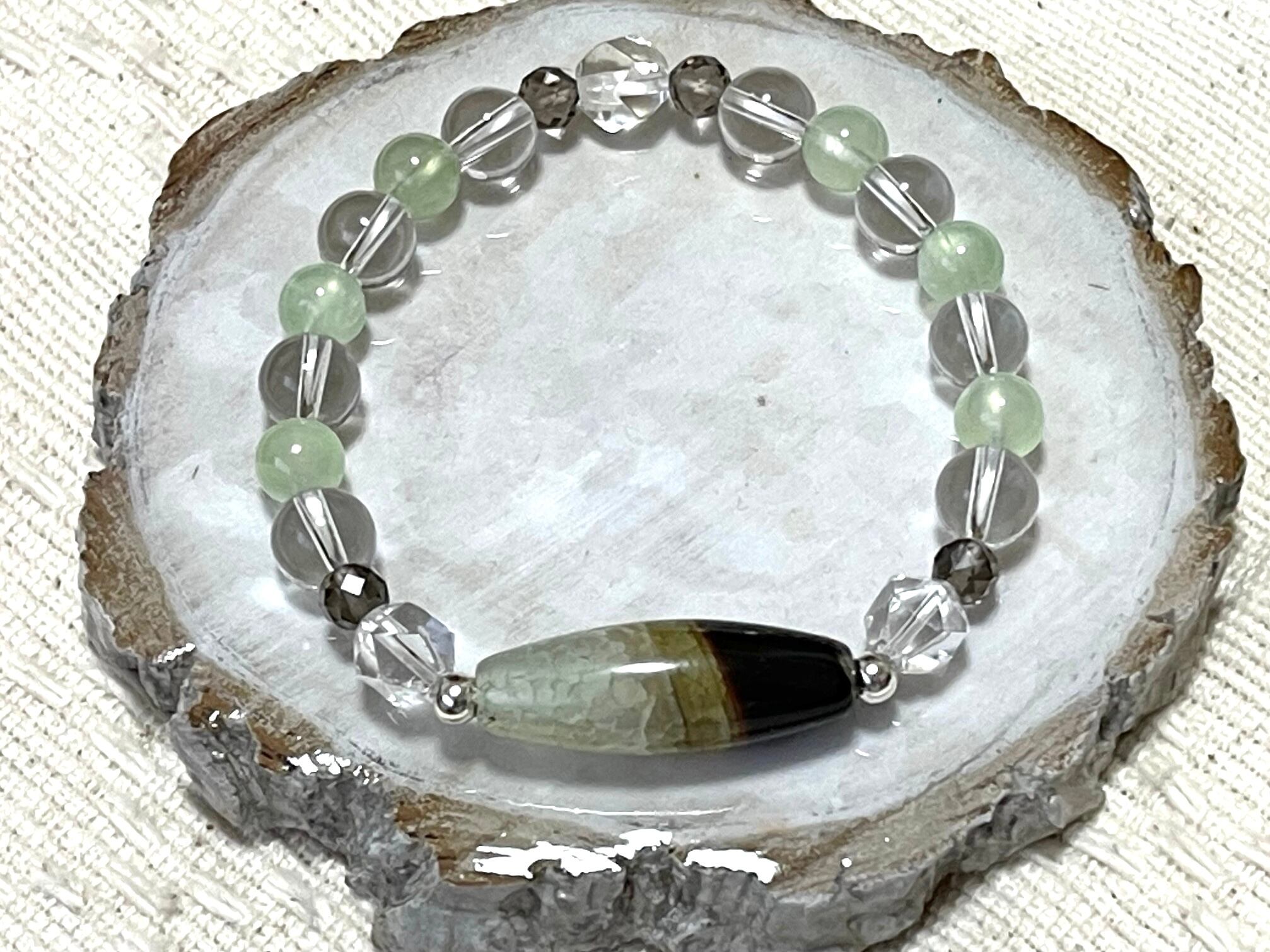 【龍紋めのう天珠×プレナイトブレスレット】