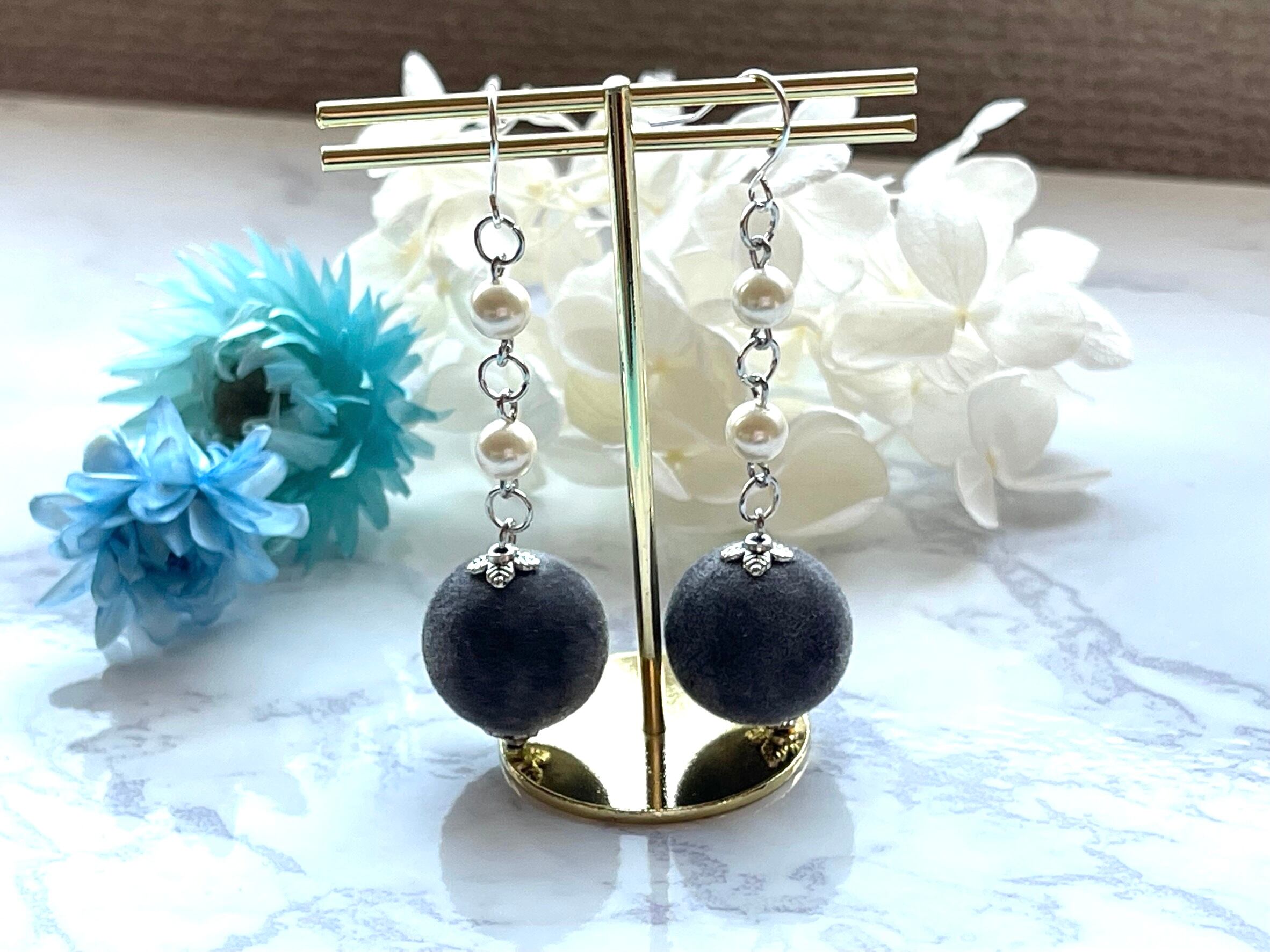 【フロッキービーズ・グレーピアス】
