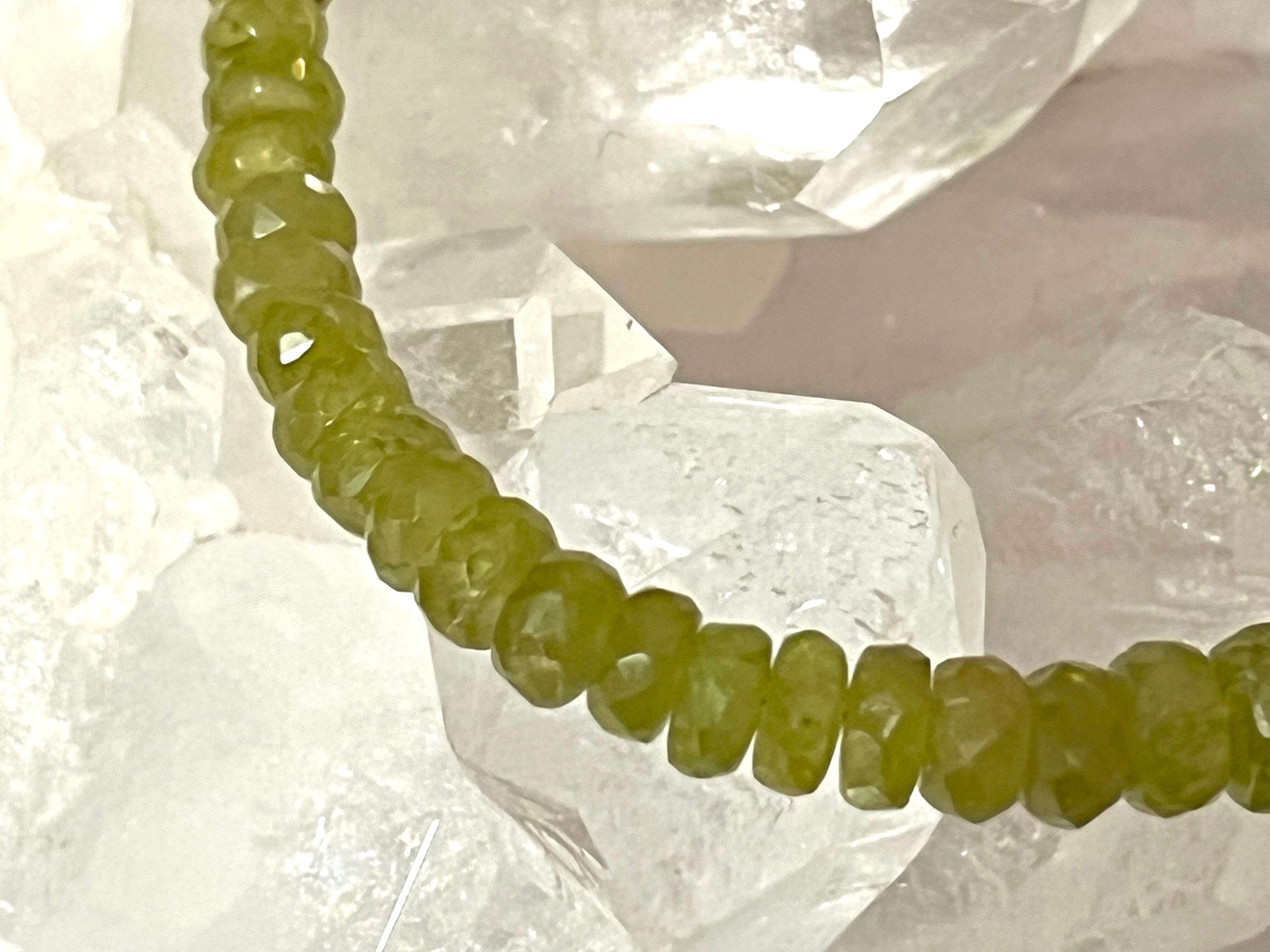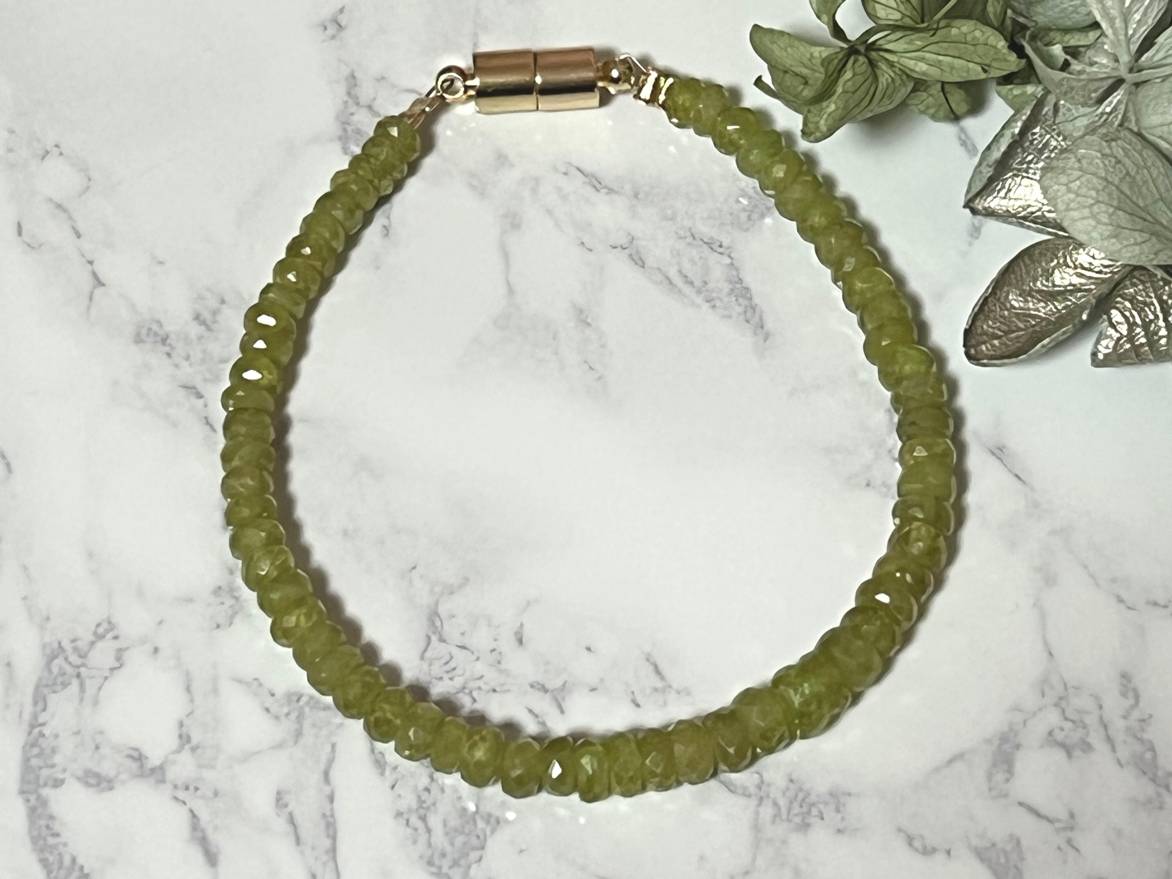 鮮やかな黄緑色の輝きが、石特有の艶とキラキラ