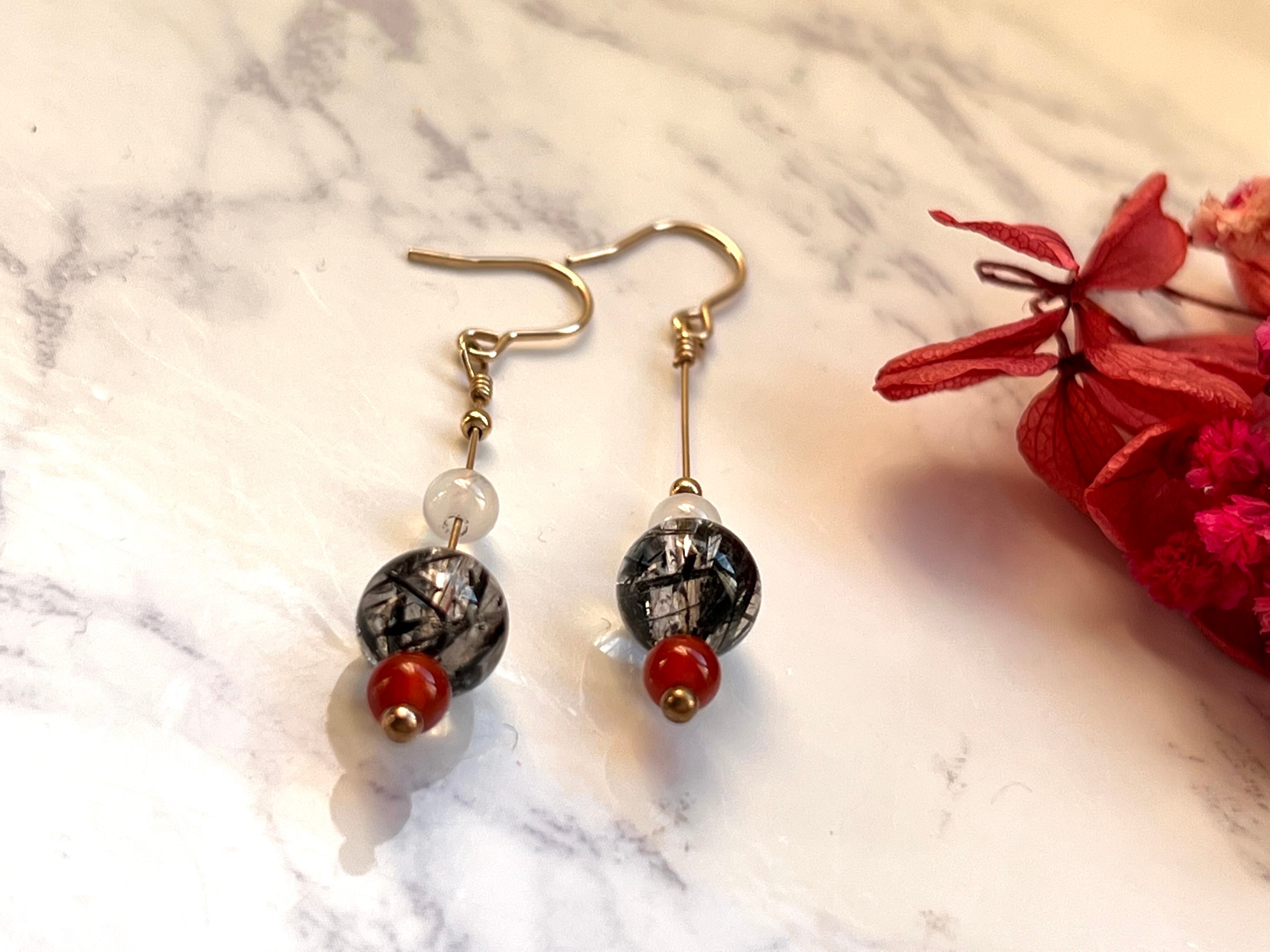 【ブラックルチルクオーツピアス】