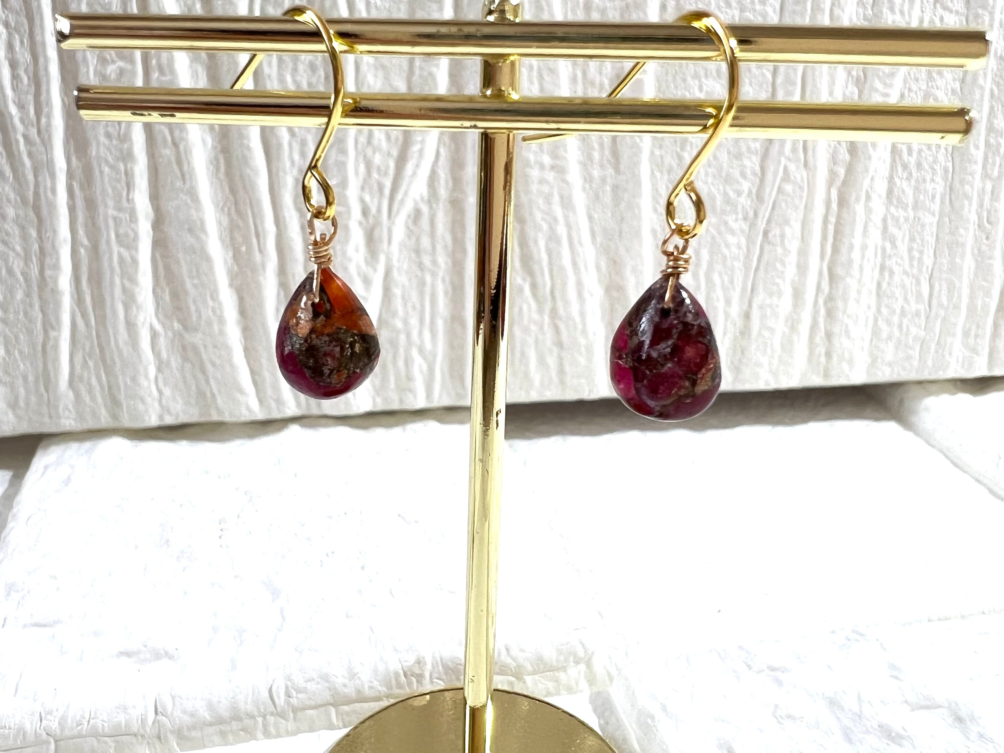 レッドパープルコッパードロップピアス