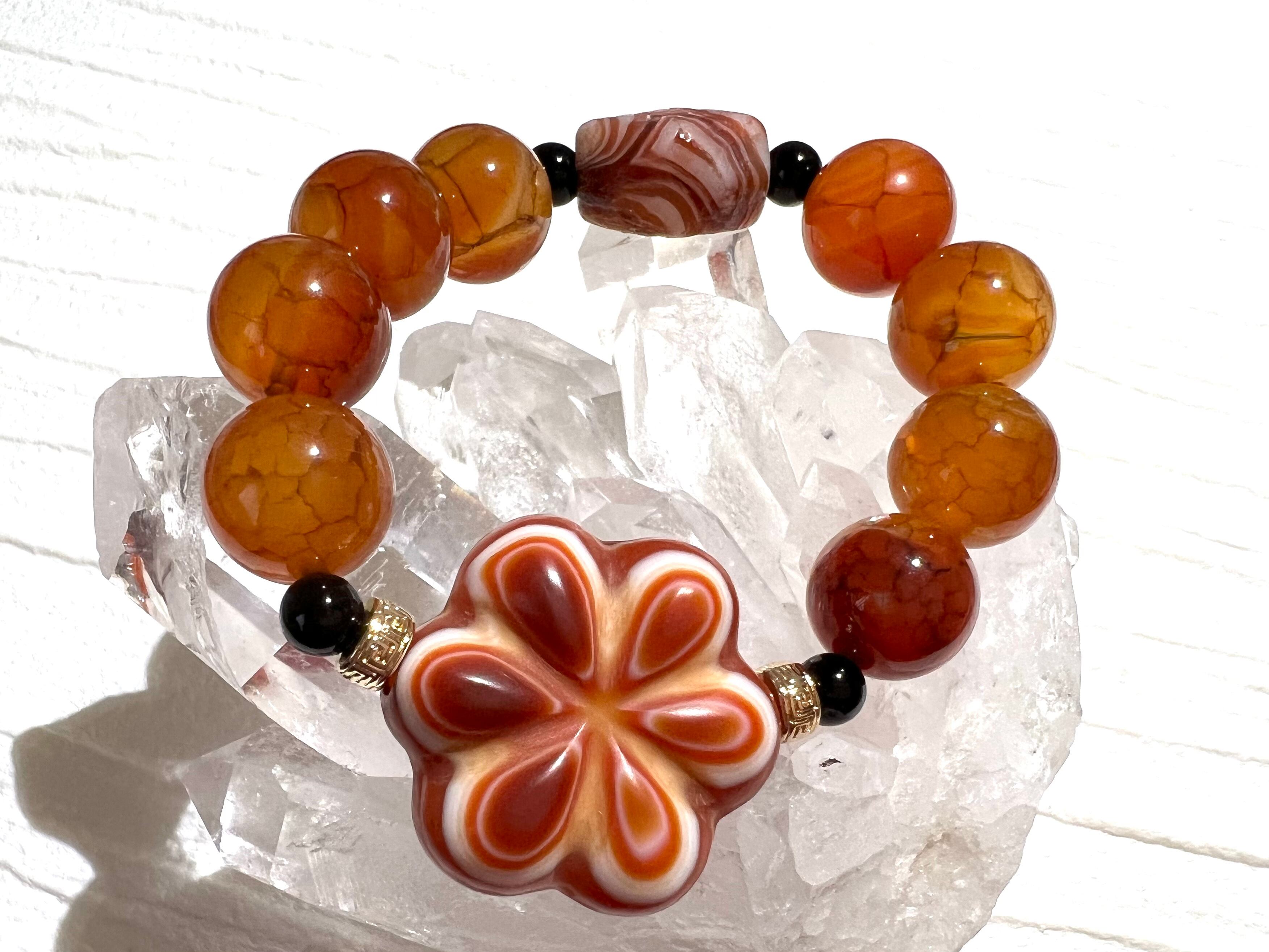 キレイな模様の線が特徴な、老鉱石線天珠。