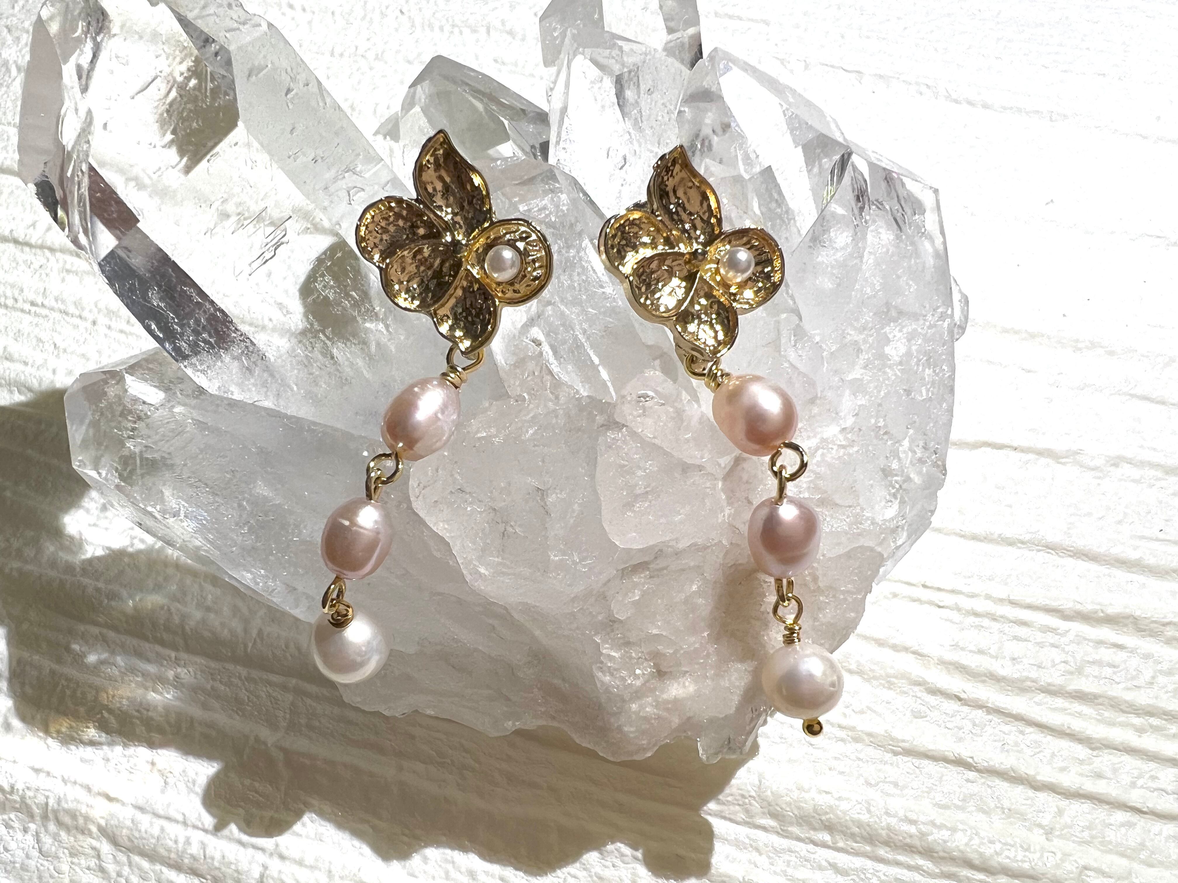 可愛いお花のモチーフの下を、ゆらゆらと動く