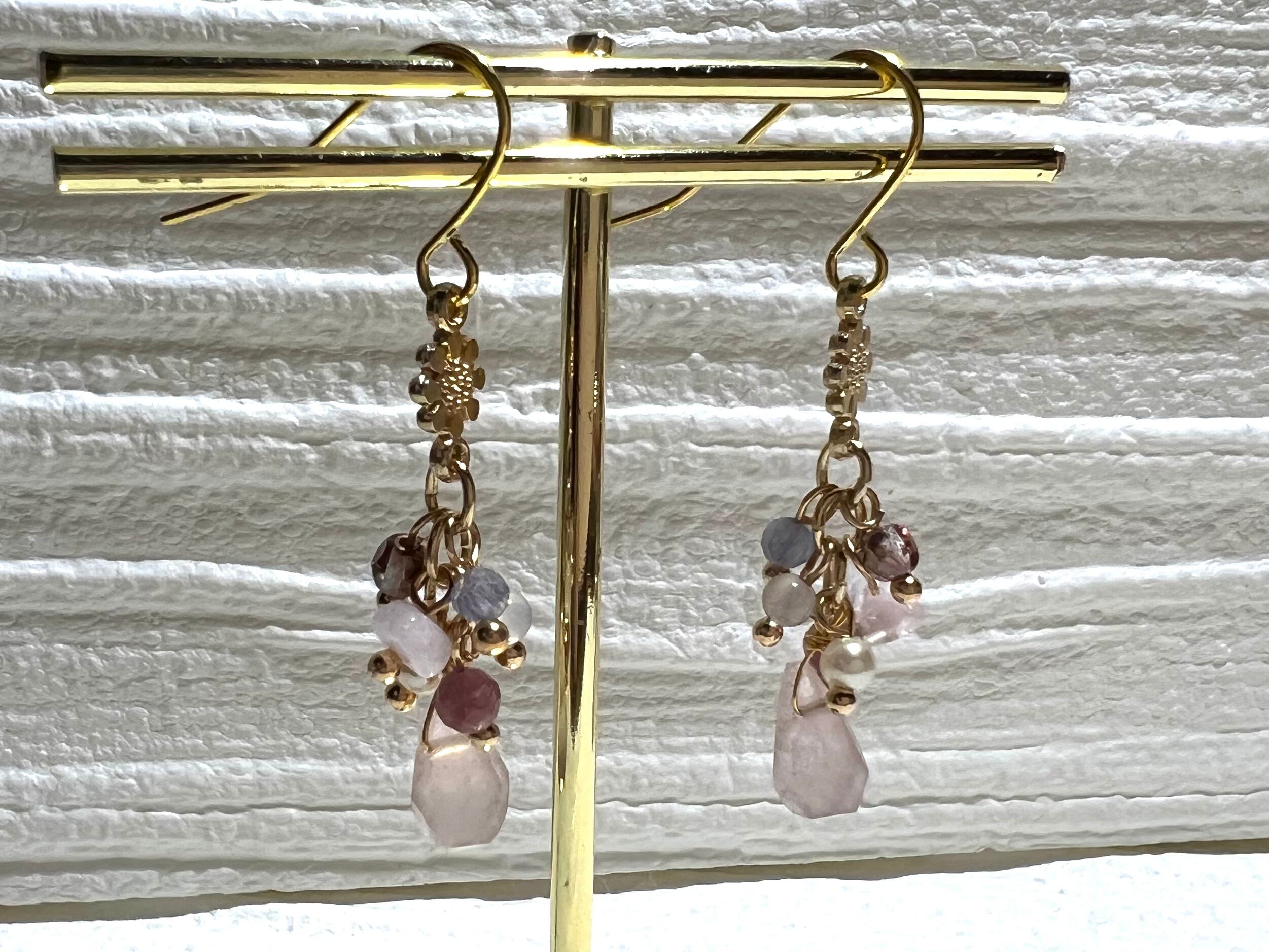 【ローズクォーツドロップ形ピアス】