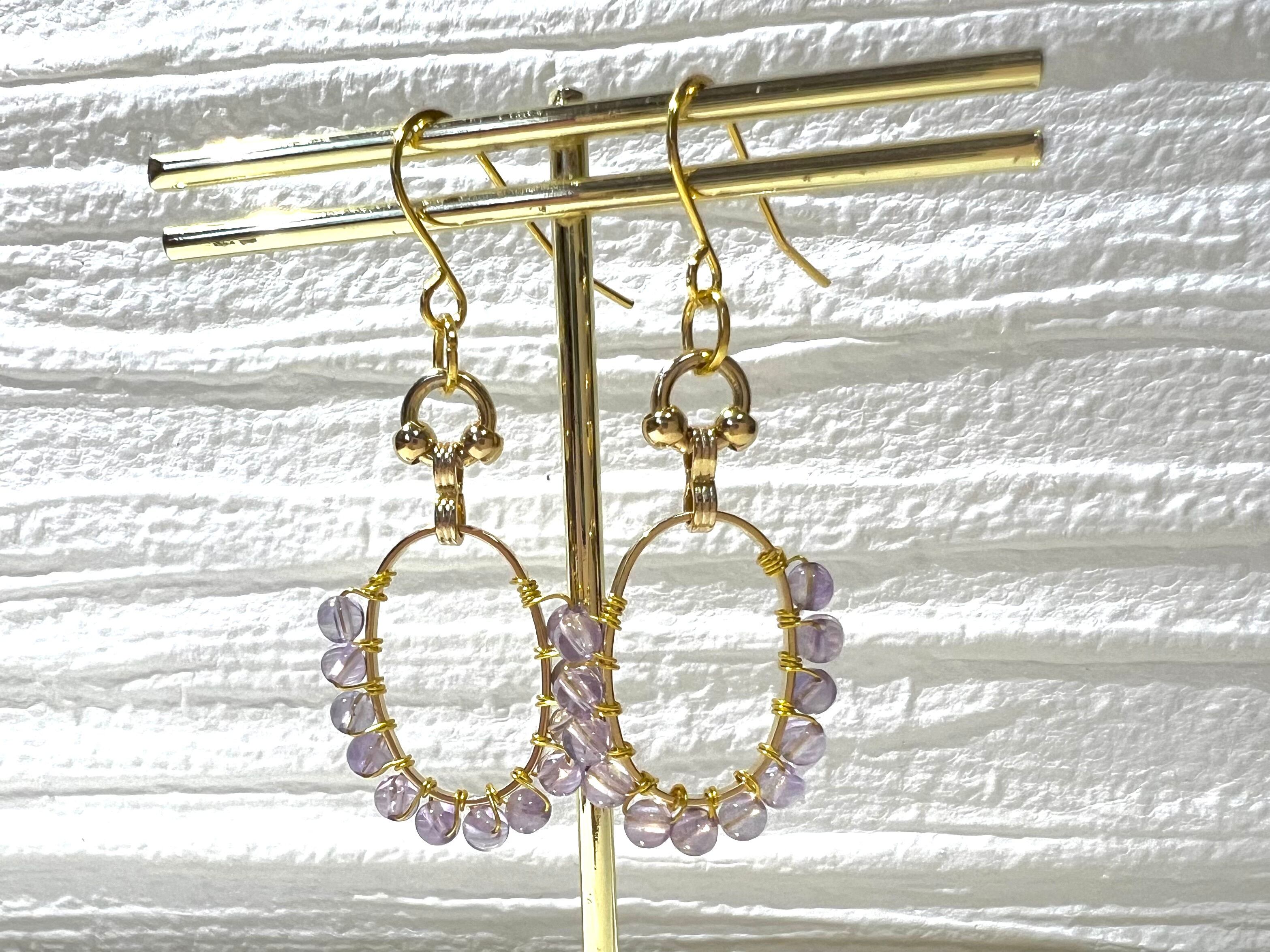 小さい丸玉アメジストを巻いて、ゆらゆら揺れる