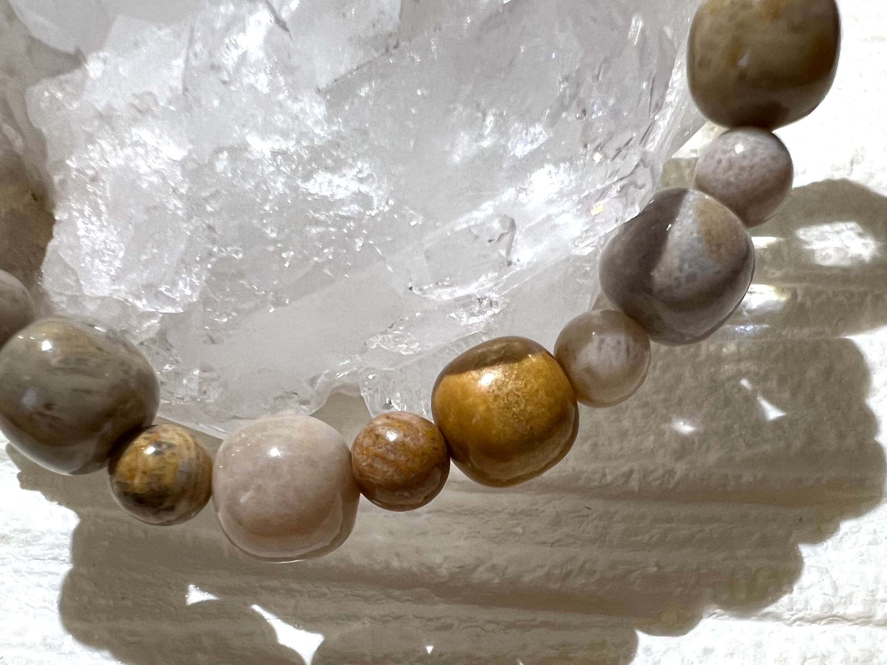 長い年月をかけて出来た珊瑚の化石で、石の表面