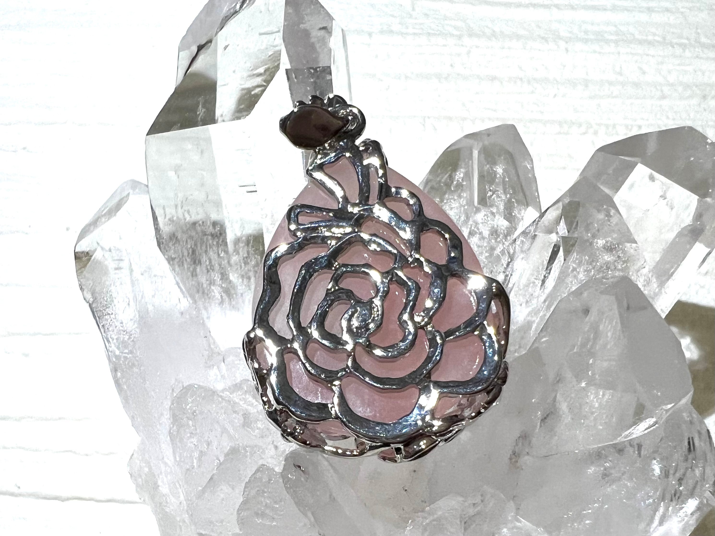 【ローズクォーツ 薔薇の装飾 ペンダントトップ】